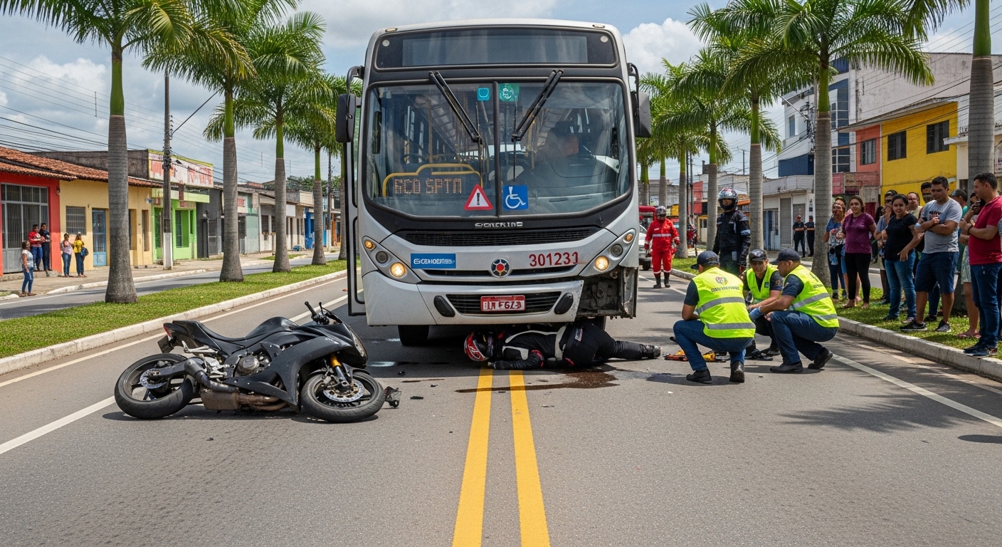 De acordo com informações preliminares, um motociclista acabou indo parar debaixo de um ônibus após a colisão, ocorrida na Avenida Nossa Senhora, esquina com a Rua das Mangueiras.